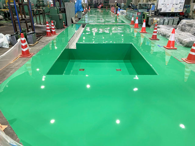 発塵を効果的に防止できることや、重量物を積んだ車両が走行できる耐久性を考慮し、エポキシ樹脂系や硬化ウレタン系などを使用して、クラックが入りにくく床面を長期間保護する施工が行われます。