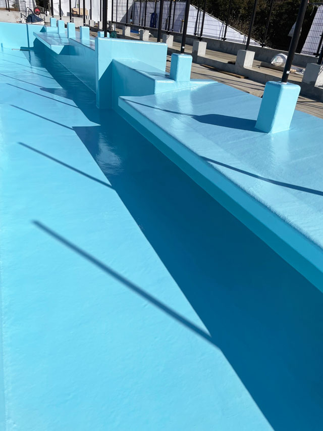 私たちはその一環として、水道施設やその他の施設において、水質の維持とコンクリートの保護を目的とした樹脂塗膜防水・防食工事を実施しています。